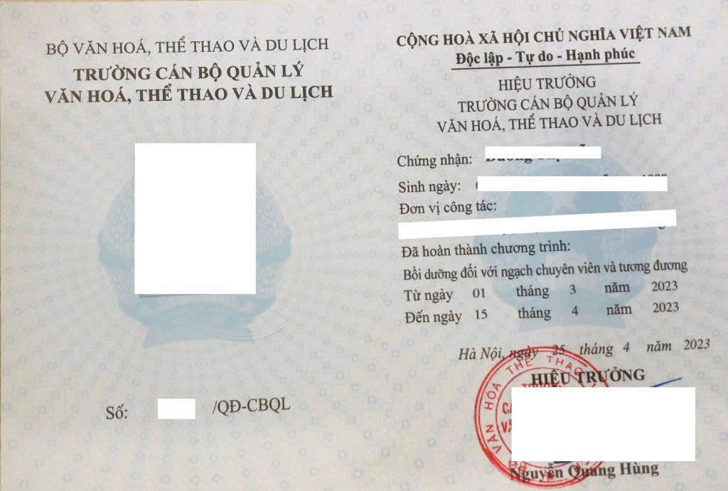 *Riêng lớp bồi dưỡng ngạch chuyên viên chính và tương đương, học viên nộp thêm: 01 bản photo (công chứng) chứng chỉ ngạch chuyên viên.