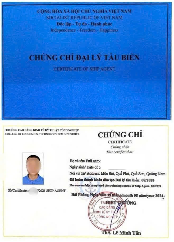 IV. CHỨNG CHỈ CUỐI KHÓA: Cuối khóa học viên đủ điều kiện được thi lấy chứng chỉ đại lý tàu biển theo thông tư số 13/2017/TT-BGTVT của Bộ Giao thông vận tải (chứng chỉ là điều kiện bắt buộc để cá nhân, doanh nghiệp kinh doanh dịch vụ đại lý tàu biển quy định tại Mục 3, Điều 12, Chương 3, Nghị định 160/NĐ-CP ngày 29/11/2016 của Chính phủ)